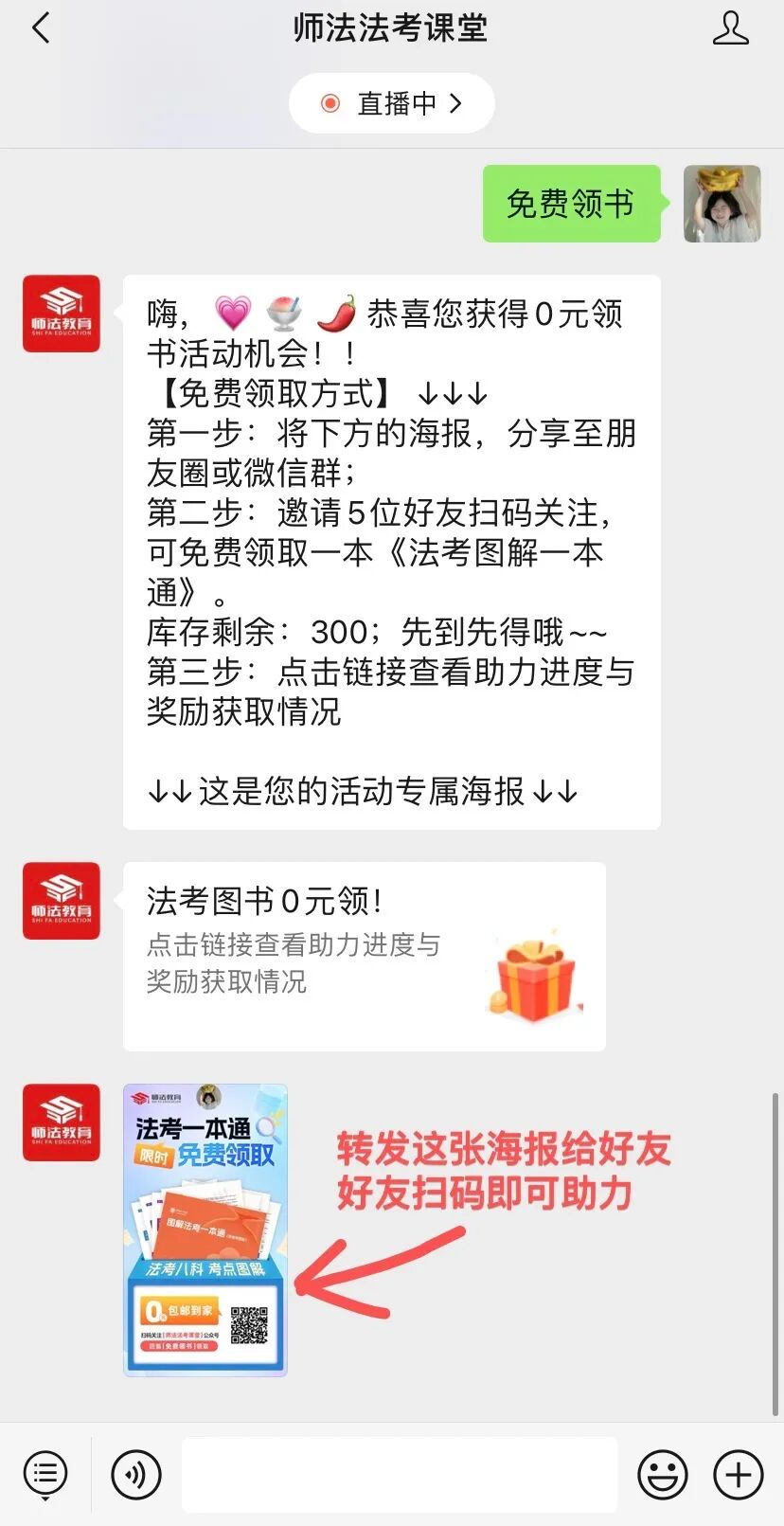 获取到自己专属链接邀请五位好友助力即可免费领取一本【法考一本通】无需邮费,包邮到家